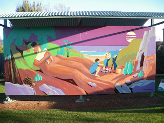 Such murals are typical on Northern Ireland’s walls, prominent on street corners and council estates. It’s part of our heritage and culture. And they look pretty. (Please note that the photo to the left and the one above are the ONLY TWO mural photos from Northern Ireland on this post. The other photos are all of Sheffield, Tasmania, Australia.)