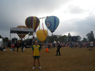 I got home and every one was asleep. We had planned to be up early the next morning for the 6 am start of the Parramatta park AUSTRALIA DAY festivities. I got to bed at 4 am, had 2 hours sleep and was awoke by the loud noises coming from the park already. Through the window of our bedroom in the Belgian Street flat, we also could see a hot air balloon rising into the hot summer sky. Remember folks, January in Australia means summer and it means hot!