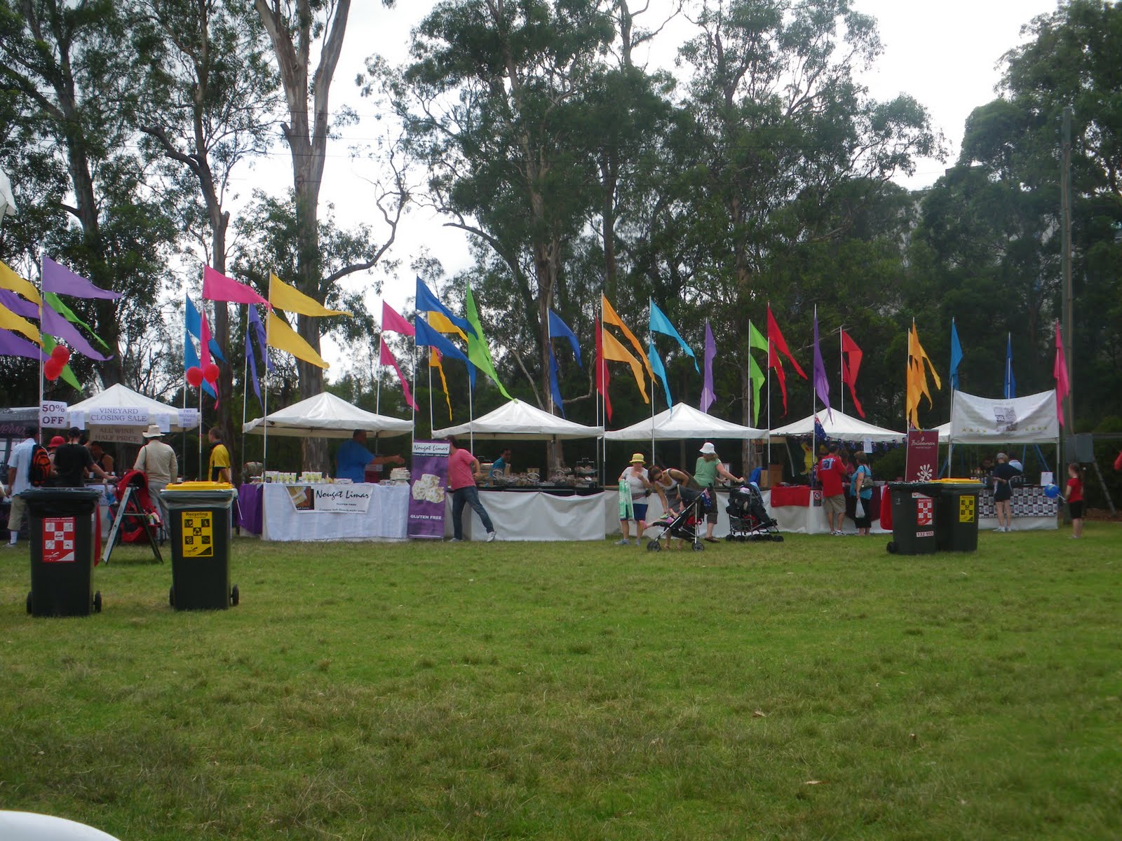 After watching a bit of the circus show it was time to take a walk through the park and check out all of the other things that were on. We saw the main stage, which was at the foot of a grassy bank. The main stage was just being set up, as it would be used for the main events and music from 6 pm that night. We headed round and did a full lap of the park, seeing the kids corner, the wine festival (which wasn’t opening until 10 am) and several stalls selling Aussie memorabilia.