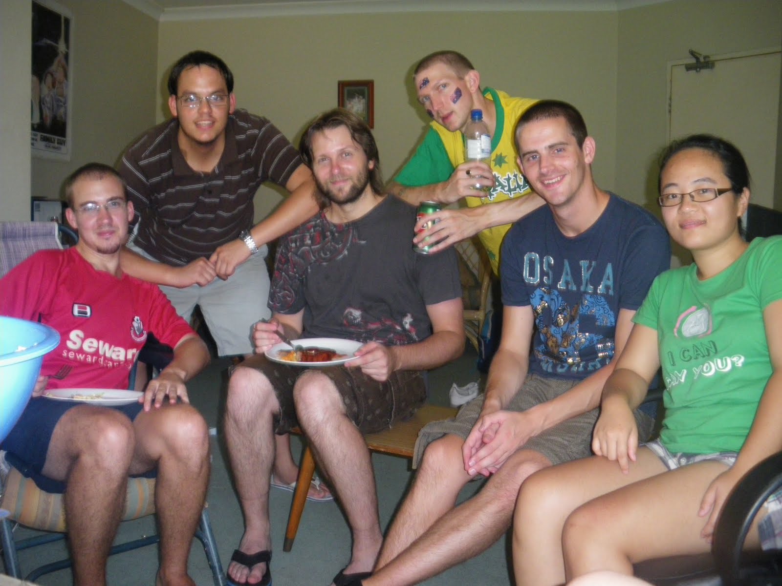 From the park we walked back home, where already the barbecue was in full swing. Ruben as ever was on the barbecue and Rebecca was helping. Pete and Daniel were lurking around and there were two new faces – Lambrini and Kirstie. These were two young pretty Australian ladies – friends of Rubens. So there were 8 of us in the flat and soon we were eating.