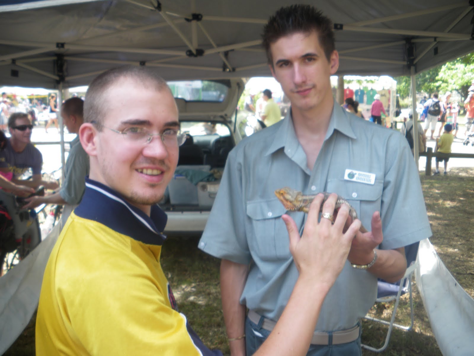 There was still no sign of an Australian Wallaby or a Kangaroo however. The two guys working there were clearly animal lovers though. One of them had a snake, the other a lizard. There were two types of lizard and all the kids were so enthusiastically queueing up to touch them and get their photo took with them. Gosh when I was a kid you’d have nothing like that. A trip to the supermarket and a browse at the Lego toys in there was our kind of bliss. After the kids had their go, I touched two types of lizard. One a bearded dragon and the other was the interesting blue tongue lizard.