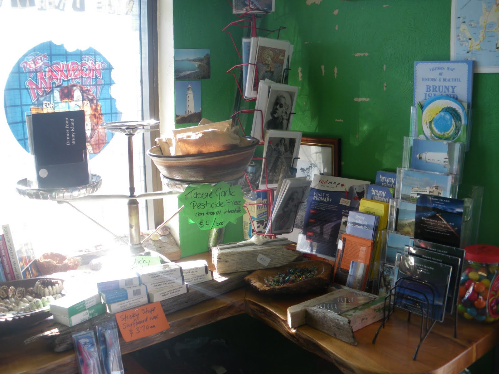 I went into the “kiosk” at Robert’s Point (the ferry ‘terminal’/departure point) and wanted a few Bruny Island postcards. One guy was working there.