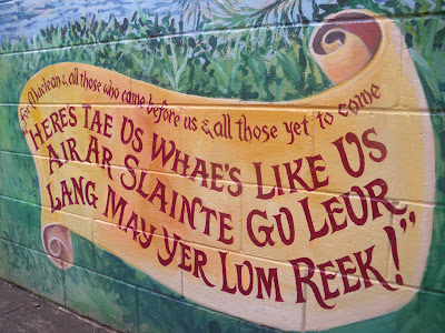 Excellent wall murals depicting drinking Scottish musicians at Maclean Hotel.