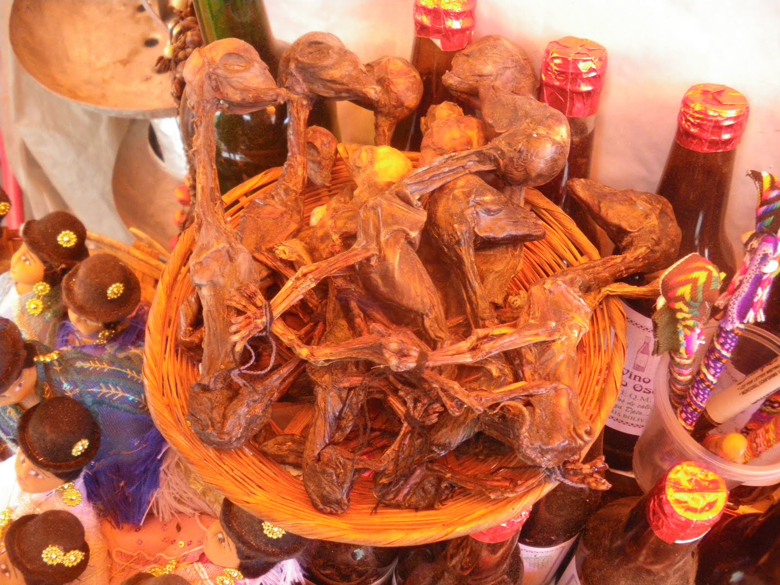 Dead Llama phoetuses – lucky charms at the Witches Market.
