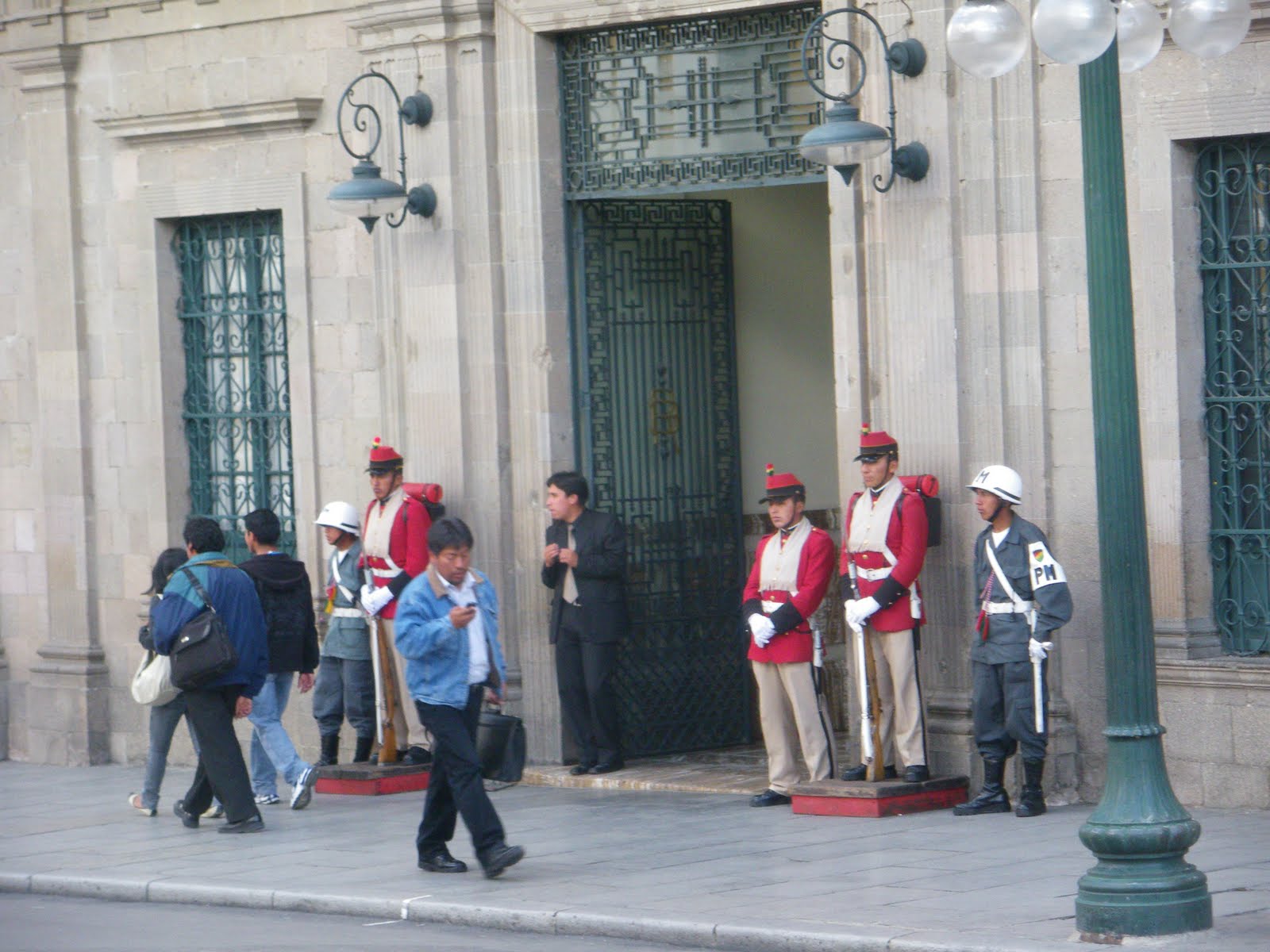 Flying the Northern Ireland flag at Plaza Murillo, the Palacio Legislativo.