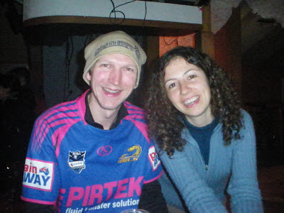 My Israeli friends Alex and Natali sipped soup with me and also gave me a slice of their pizza, which was kind. Alex then made some hot wine for us in the cold chill.