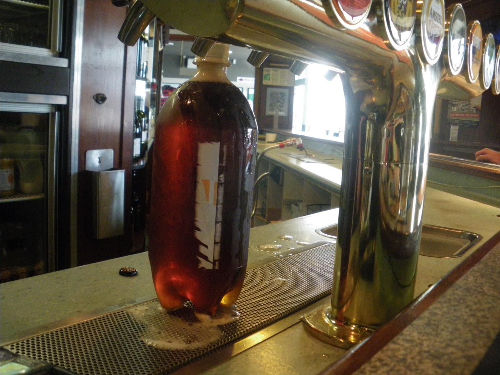 Sam fills it up and they even have buttons on the till for how much a customer wants – in this case was 2 litres of fresh keg beer. If you tried that in a bar in the original Belfast in Northern Ireland the bar man would ate the face off ye. The UK and Europe are much too strict and so into customer service that they actually neglect the very thing they try to promote – customer service!!