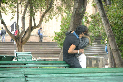 A flirty local couple get it on, in one of the city’s squares (not Plaza de Armas though).