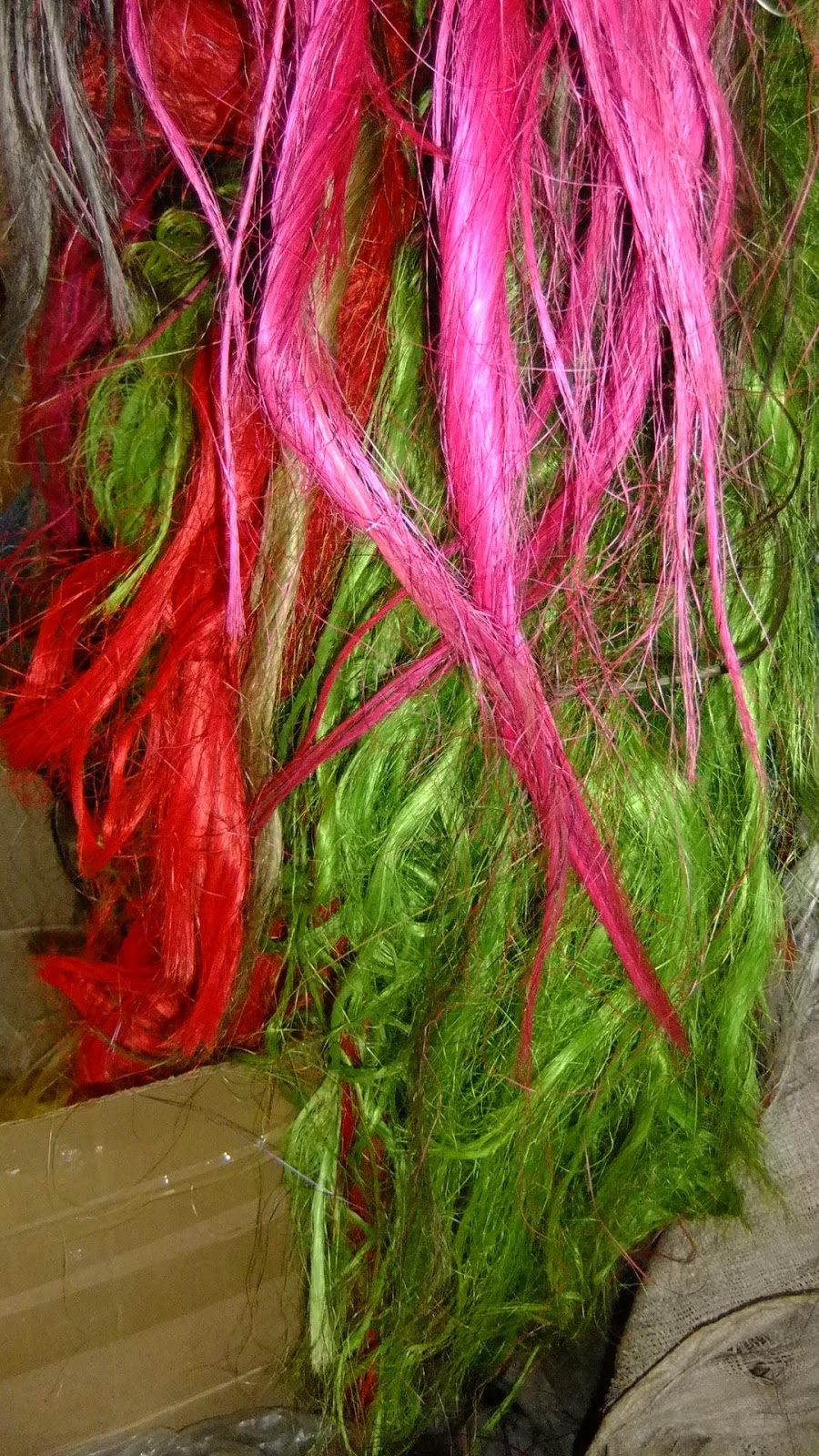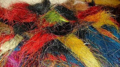 Swaziland as a small nation kingdom does well in its mass production of random products. Here at Gone Rural they make many items for around the house including bowls, table mats and lampshades. Our tour starts by being taken outside to see the natural long grass. Of course the colour is naturally light brown, green and even black, but in different sections, the grass (more like thick straw or hay) is dyed and separated by colour as it dries outside in the gardens in the Swazi sun…the coloured grass looks like this once its dry…
