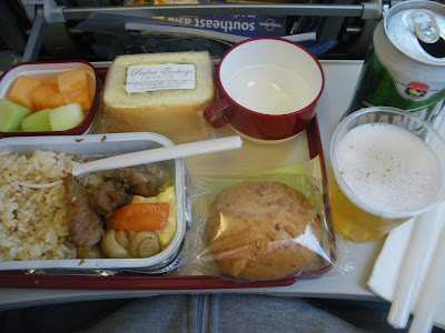A hearty meal on my flight out of Manila, complete with a green tin of Manila Light beer, the third different Philippines Beer I tried in less than 20 hours. I have since been back of course and you can view lots of my other articles on the Philippines here.