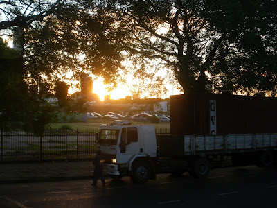 SUNSET ON LEAVING BUENOS AIRES FOR THE LAST TIME FROM MY BUS WINDOW: