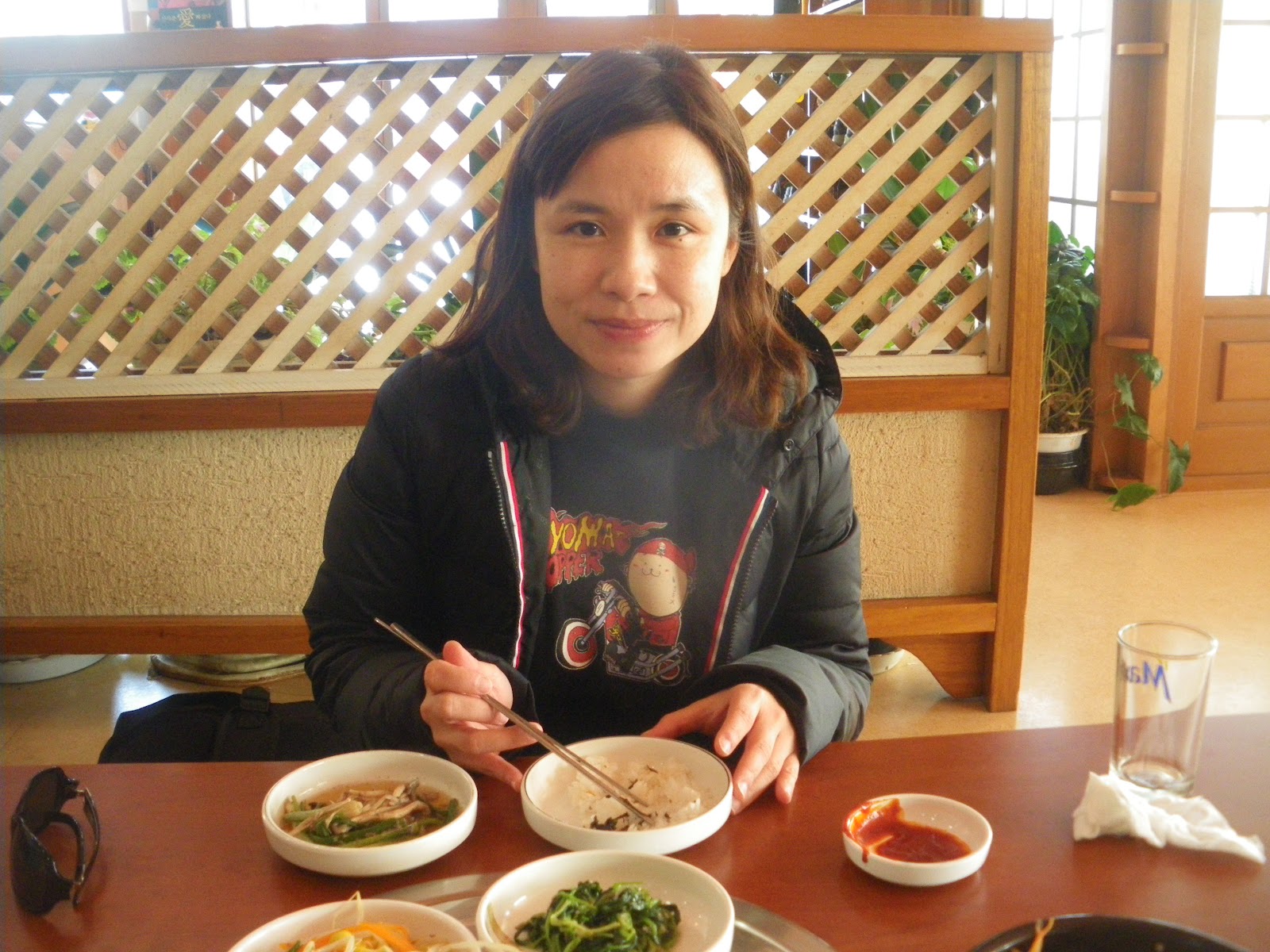 Panny enjoys her lunch near North Korea. Somewhere close to the border apparently.