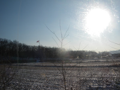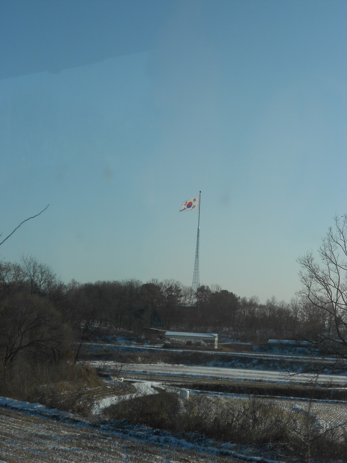 The snow had cleared on this part of the DMZ. This is also North Korea.