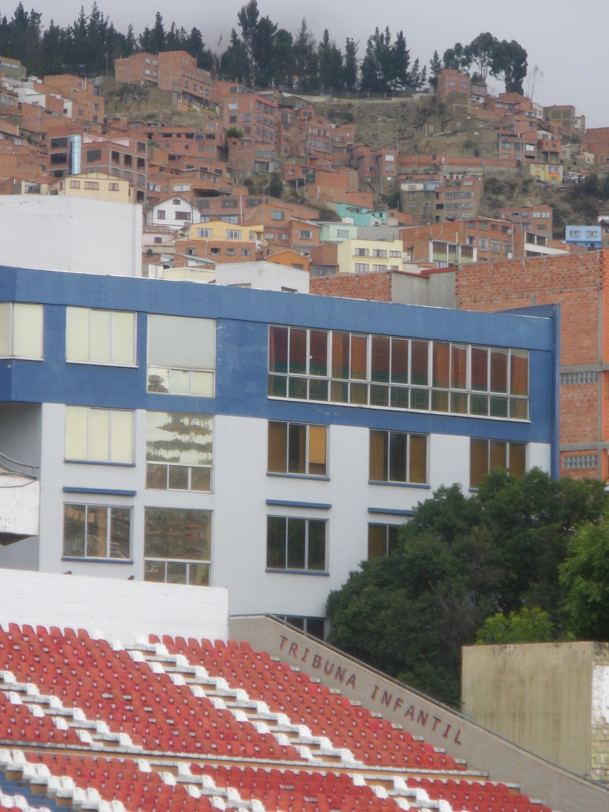 The rising suburbs of La Paz go beyond Estadio Hernando Siles, tower blocks similar to this one give La Paz a grey/dull colourful “block appeal”.