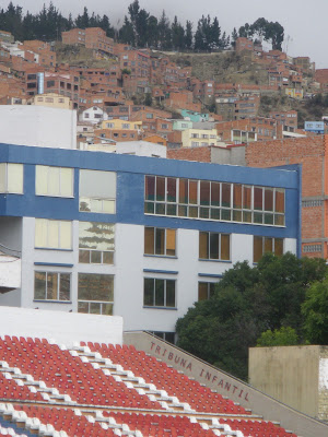 It was high up, but La Paz even veered higher again to my left, heading into hills of almost lego like blocks, similar to the ranchos in Caracas, of Venezuela fame. This stadium eclipsed everything in sight.