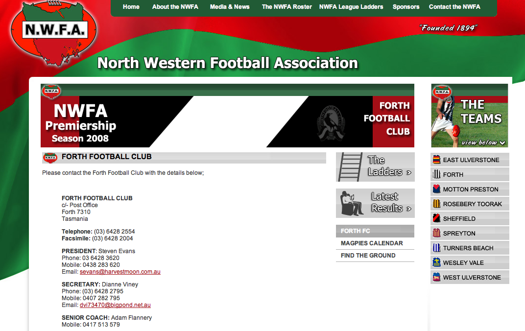 A big thanks to my mate Chris Elmer and all at Forth Football Club for an excellent bit of hospitality and providing me with my first experience of watching Australian Rules Football live. About 3 weeks later I left Tasmania and my farming job behind.