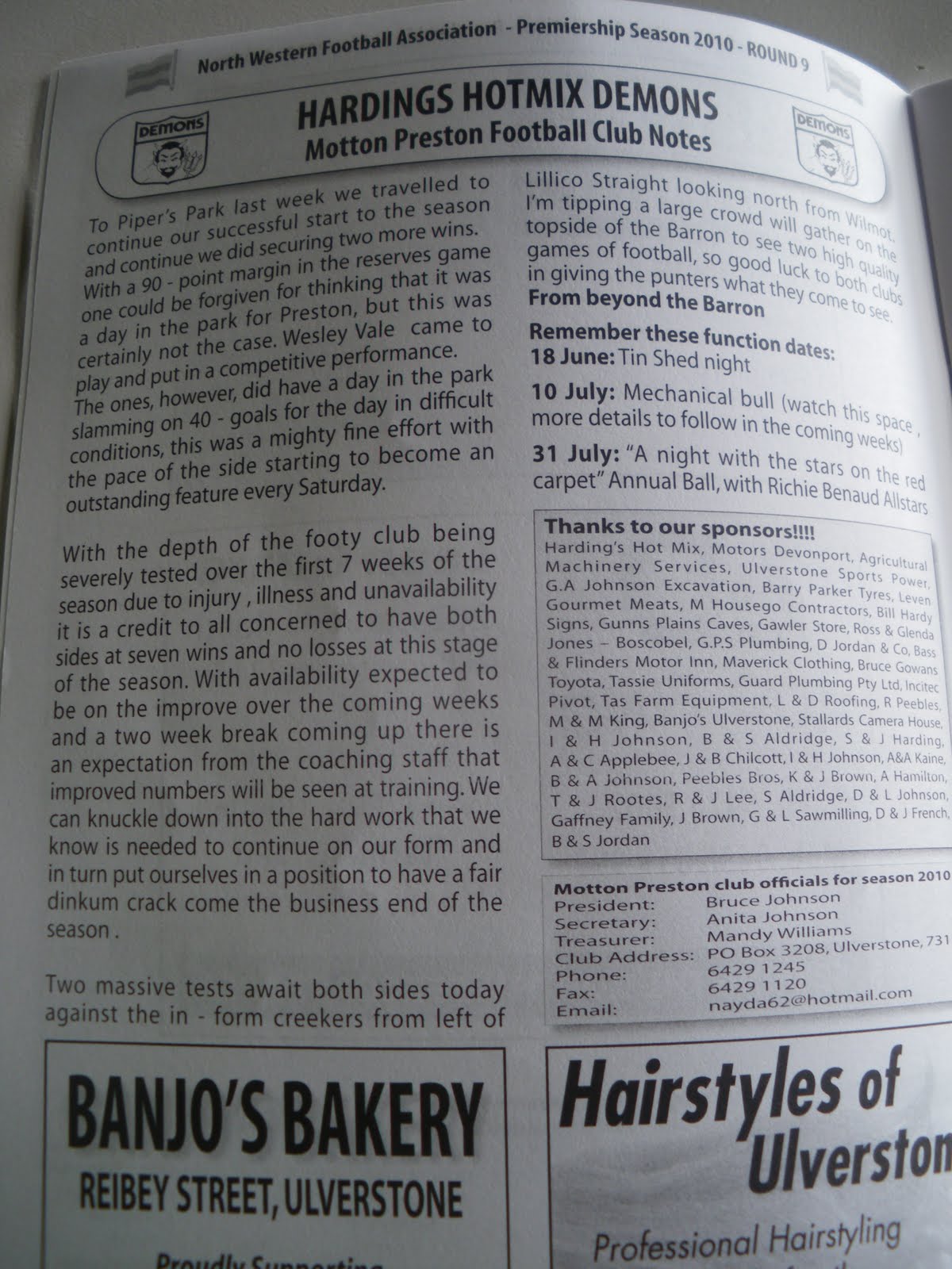What Was It – North Western Football Association Premiership Season 2010 – Country Australian Rules Football matches in Tasmania