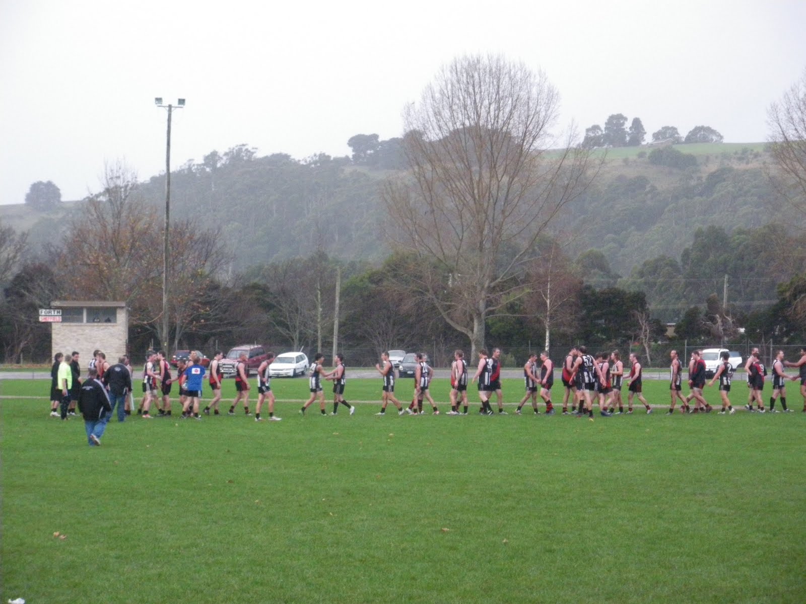 The Seniors match had a much bigger attendance, new people had arrived, and the reserves team had finished so they get changed and shout it out for the Seniors.