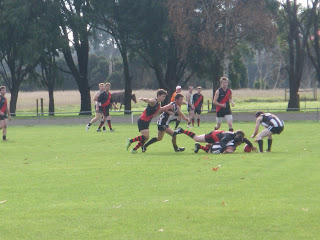Love this photo as you can see the heart of the action on the pitch, and behind it a horse, just to show its a country match in the Tasmanian wilderness (though Forth is not really wilderness…)