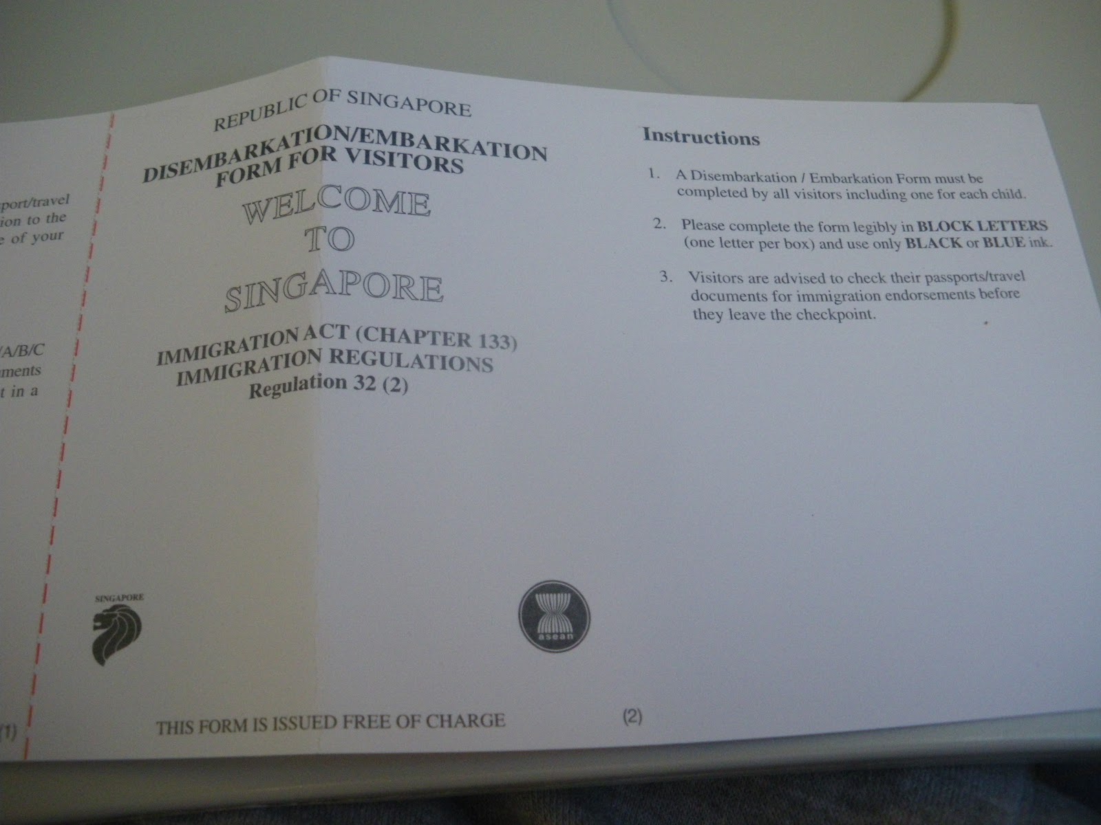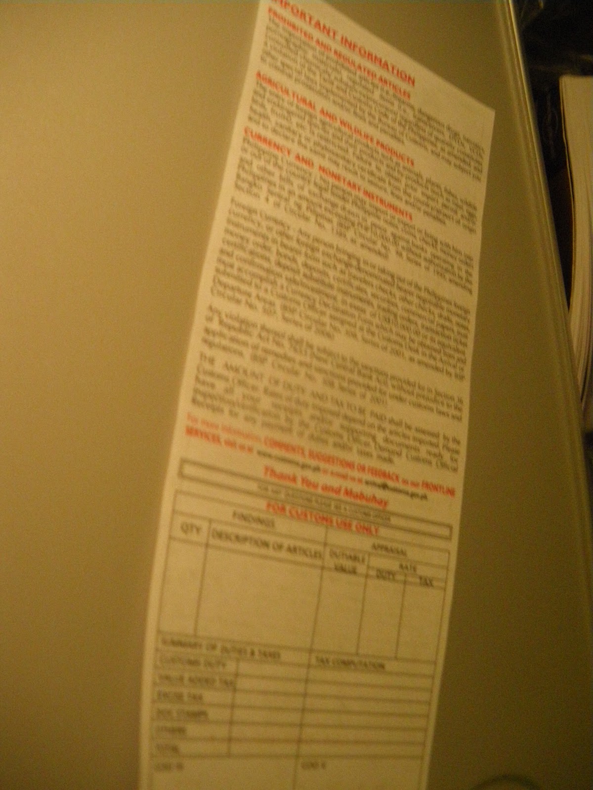 Immigration card for The Philippines.