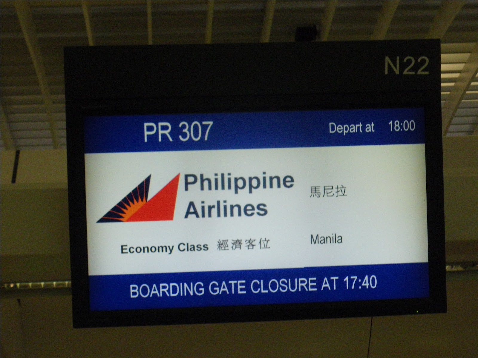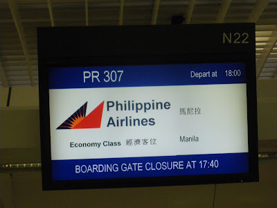 IN THE QUEUE AT HONG KONG AIRPORT FOR THE JUMBO JET TO MANILA: