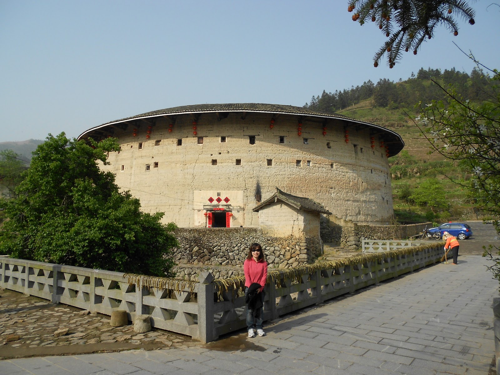 We arrived at 8.50 am at the beautiful little Yuchang Earthen Building, shining in the morning sun and situated (wait for it) in Xiaban Village in Shuyang Town in Nanjing County in Fujian Province in The People’s Republic of China. Even that is shortening it. And it gets confusing as this exact building according to the books and maps is in about 6 different villages with different names! Anyway we arrived here!