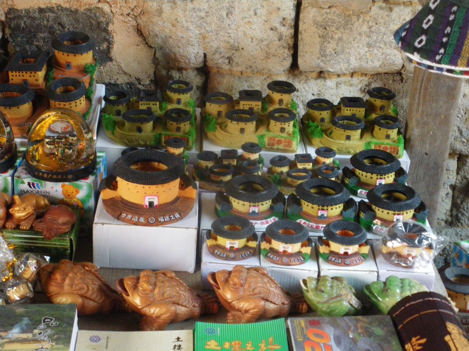 More gifts. I bought some postcards and Panny bought a replica of the Yuchang for her growing cabinet collection. Each of the 5 storeys has 54 rooms! The entire building is divided into 5 units, with a staircase to each. The 5 clans had their own section then, but now there are only members of the Liu clan who remain there. Something like between 10 – 15 of the actual households are in use. The rest is for tourist purposes and of course the entire Earthen Buildings of Fujian Province are a World Heritage Site.