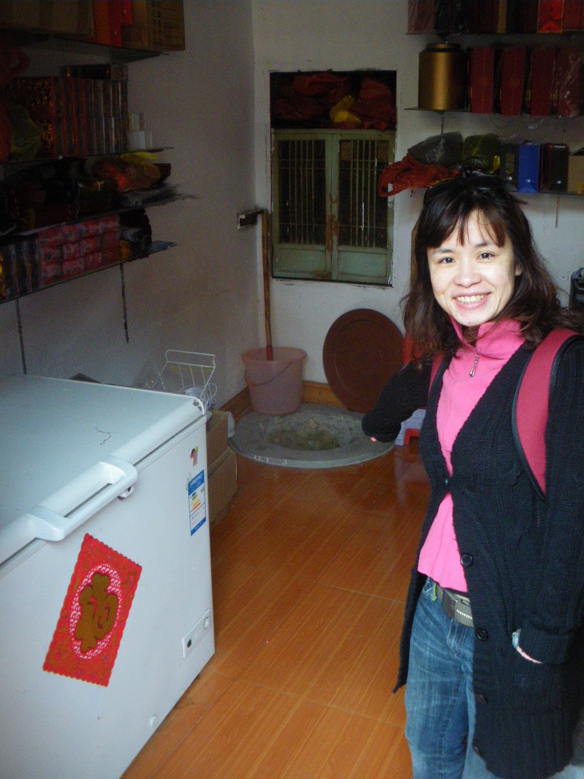 We got to go inside the actual “houses” within. Basically these massive buildings were the homes for over sized families, housed in their own unique village dwelling. Panny’s pointing as a well. I believe this is where they got their water from. It wouldn’t have been hard, the Yuchang building is right beside a river.