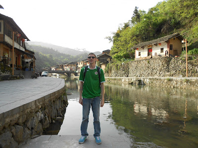 We followed signs to a place called De Yuan Tang. Those pillars behind me and this elevated platform overlooking the village is known as De Yuan Tang. As far as we could tell anyway. There are not a great deal of other travel websites in English on this area, hence why I cannot confirm the accuracy of any of these place names. The walk across the river and up to De Juan Tang was relaxing and enjoyable. I’d say it was 20 – 30 minutes walk from our “hotel” well our base at the Qingde Building.