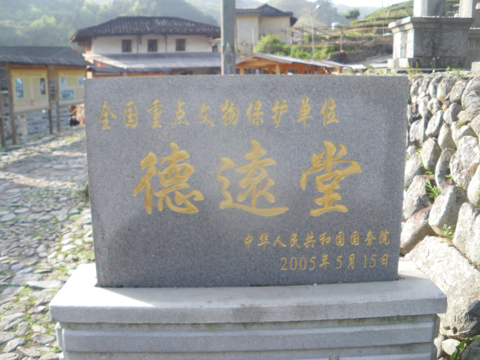 A memorial marker at De Yuan Tang.