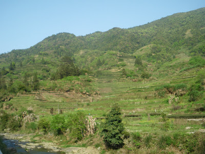 Layered rice fields are also in abundance in this region of China. The ones in and around Taxia weren’t quite so pretty, but unusual!