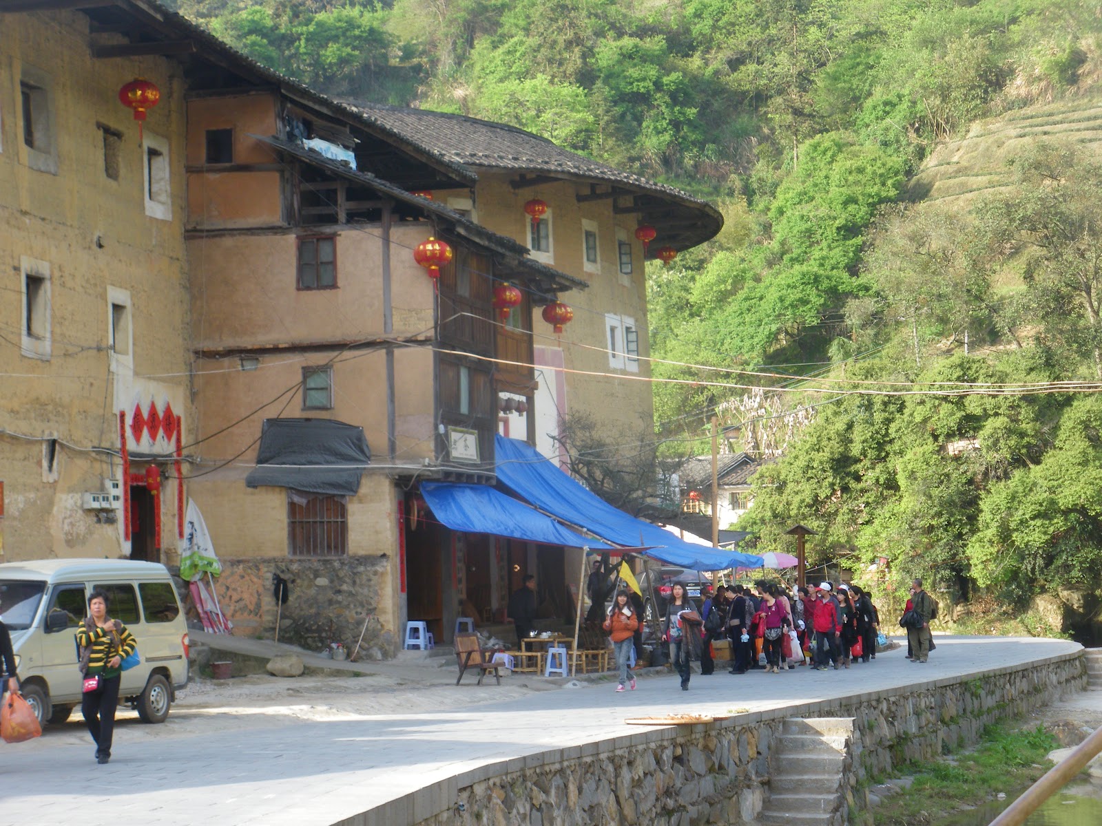 The river through Taxia Village again there. It’s runs right through the centre of the village. To continue about the Earthen Buildings, the ones built during the Ming Dynasty are the ones that can be seen everywhere and if you care to read the other posts on the tour of Fujian Province, you can see the extreme detail and variety within them.