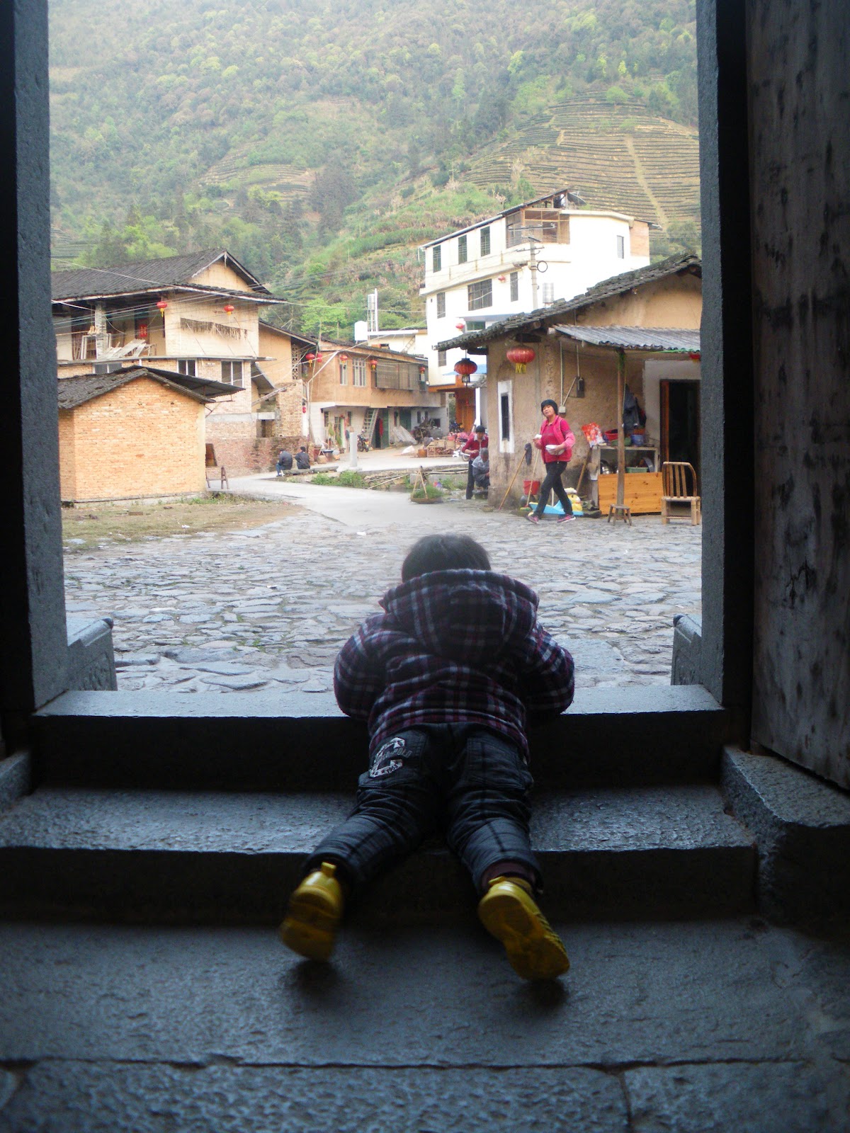 Snapshots of life in Taxia Village from the young to the old. One day this child will be residing in these buildings ready to pass them down to his offspring, of which there still remains a 1 child per family rule.