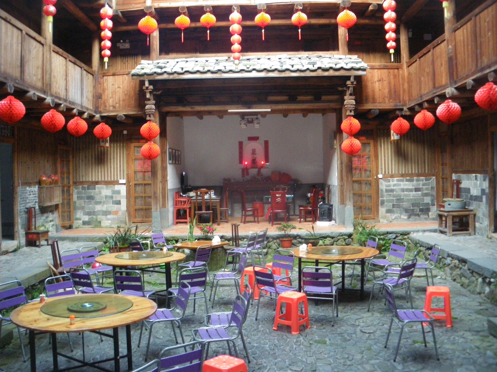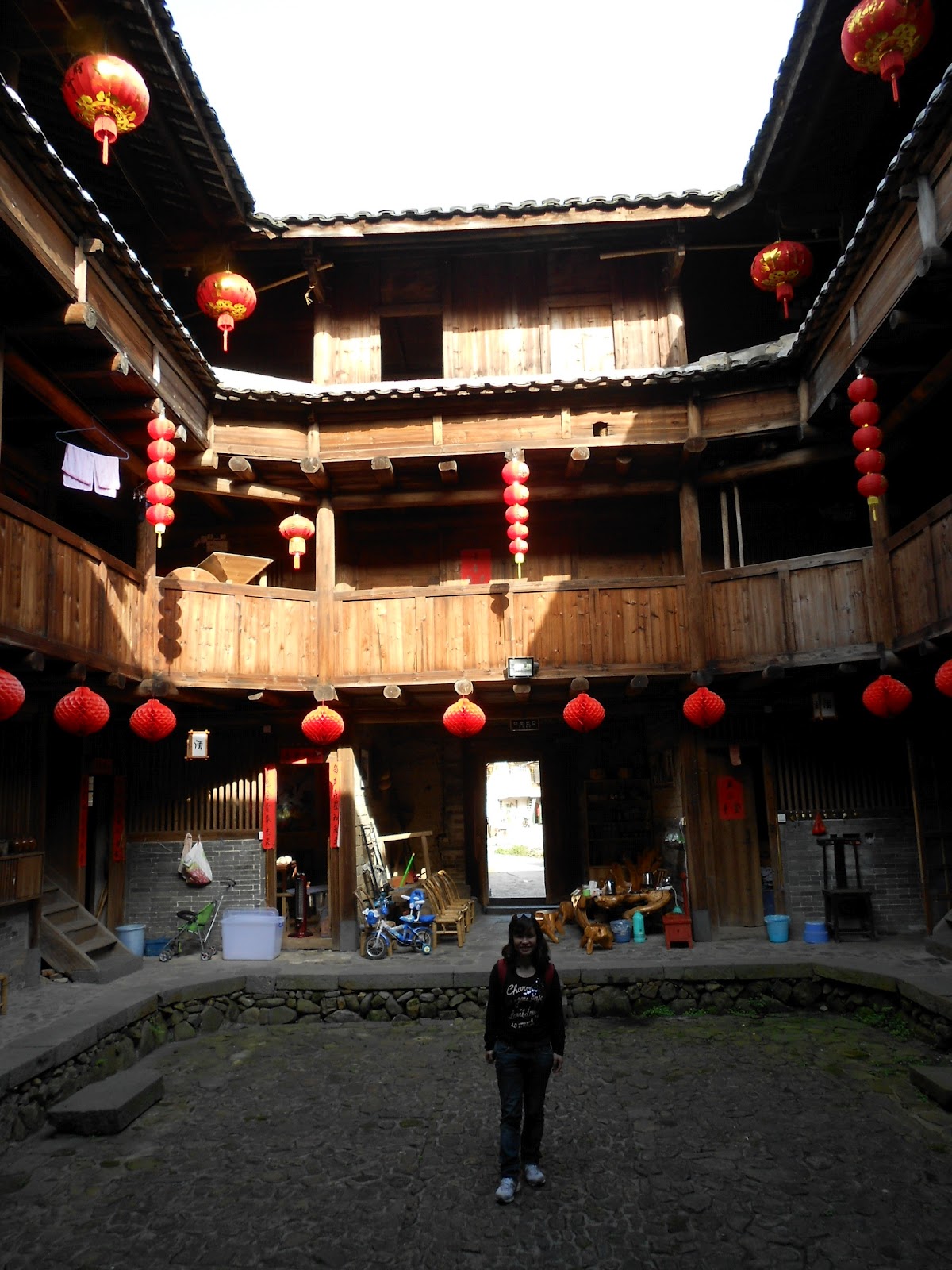 Enjoying the inner courtyard on the ground floor of this exquisite wee hostel. An entire clan once lived within this compound. In the bygone days of vintage Fujian China these clans would have been self sufficient.