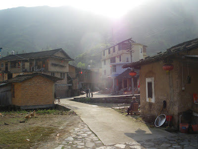 The sun shines into the Qingde Building. This was in an area called Qingde Lou part of the larger village known as Taxia Village (also pronounced or known as Ta Pa Tsune). In turn Taxia Village is part of Shuyang Town. To makes things more complicated than they should be Shuyang Town is in Nanjing County in the Fujian Province of China.
