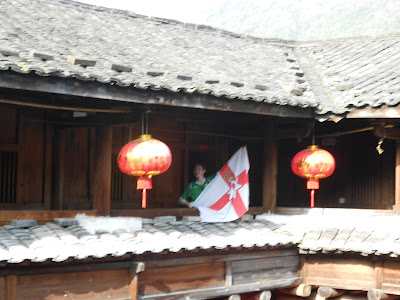 Flying my Northern Ireland flag on the balcony on the third floor – the top one of the Qingde Building.