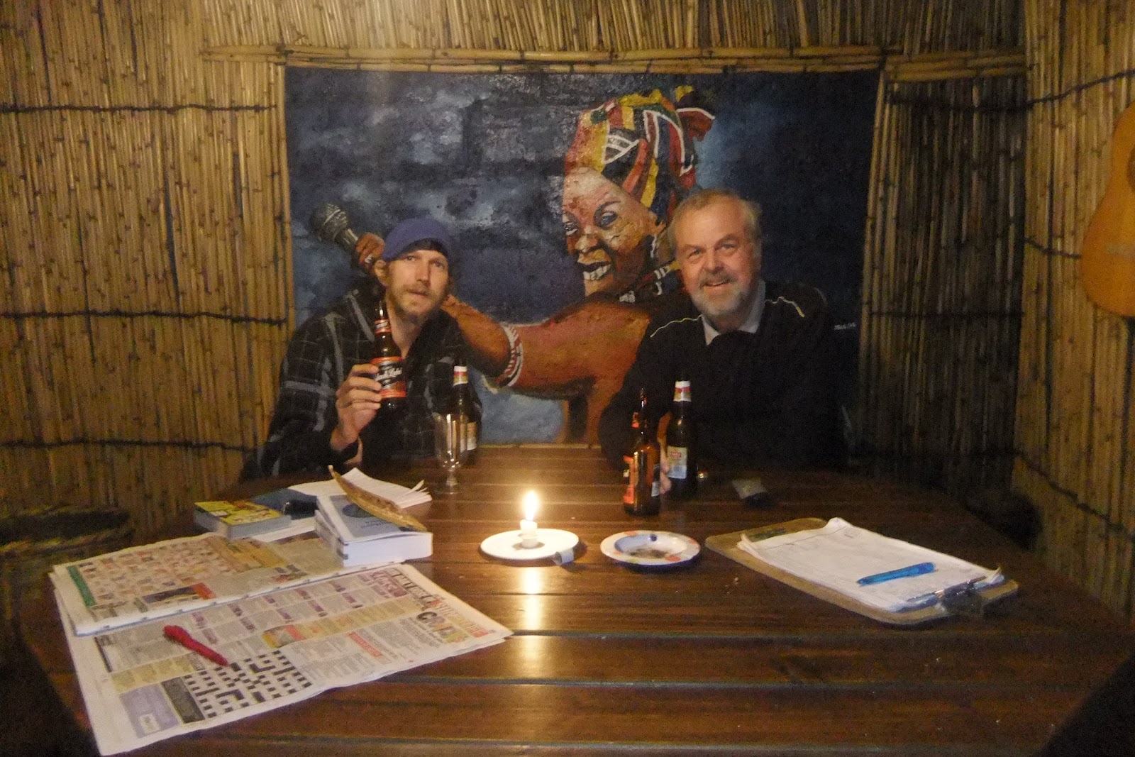 I oddly opted for a vegetarian light meal – butternut salad and a strawberry juice. My reasoning was probably because they were cheap. Herbert did splash out on one beer, but at double the price I was being wary as I had been unable to check my cash balances since I had left Brazil a week earlier. The meal was totally fantastic and in a very hot climate the strawberry juice was thirst quenching. The cost including the tip was 51 rand (about 5 pounds).