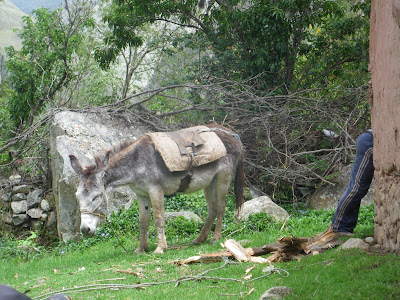 There were many donkey son the way. Scattered houses and their owners use donkeys to carry food and wood from place to place.