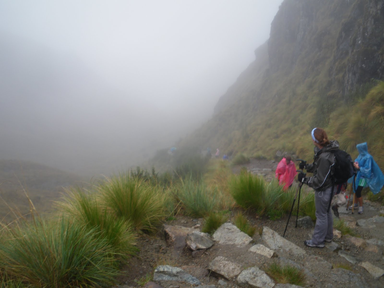 Our group became separated at this point, as many were faster and many were slower. I was one of the fast ones, and I enjoy the rain so was hiking on my own for a brave while until the first morning break point on the steep ascent. Here I am, alone at Yuncachimpa Ayapata.