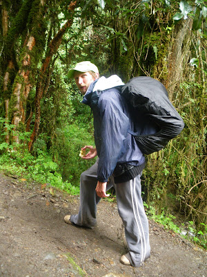Struggling for breath near the top in the misty mountains!