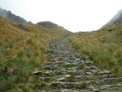 Having reached our peak on what is apparently the toughest day of the Inca Trail, it was on down through the mist to our campsite for the night. I walked this part with Roberta. We took it fairly slow and chatted a fair bit. Mixing Spanish and sometimes English to communicate. I told her of my plans to visit Brazil again in 2014 for the World Cup and hope to meet up with her again someday.