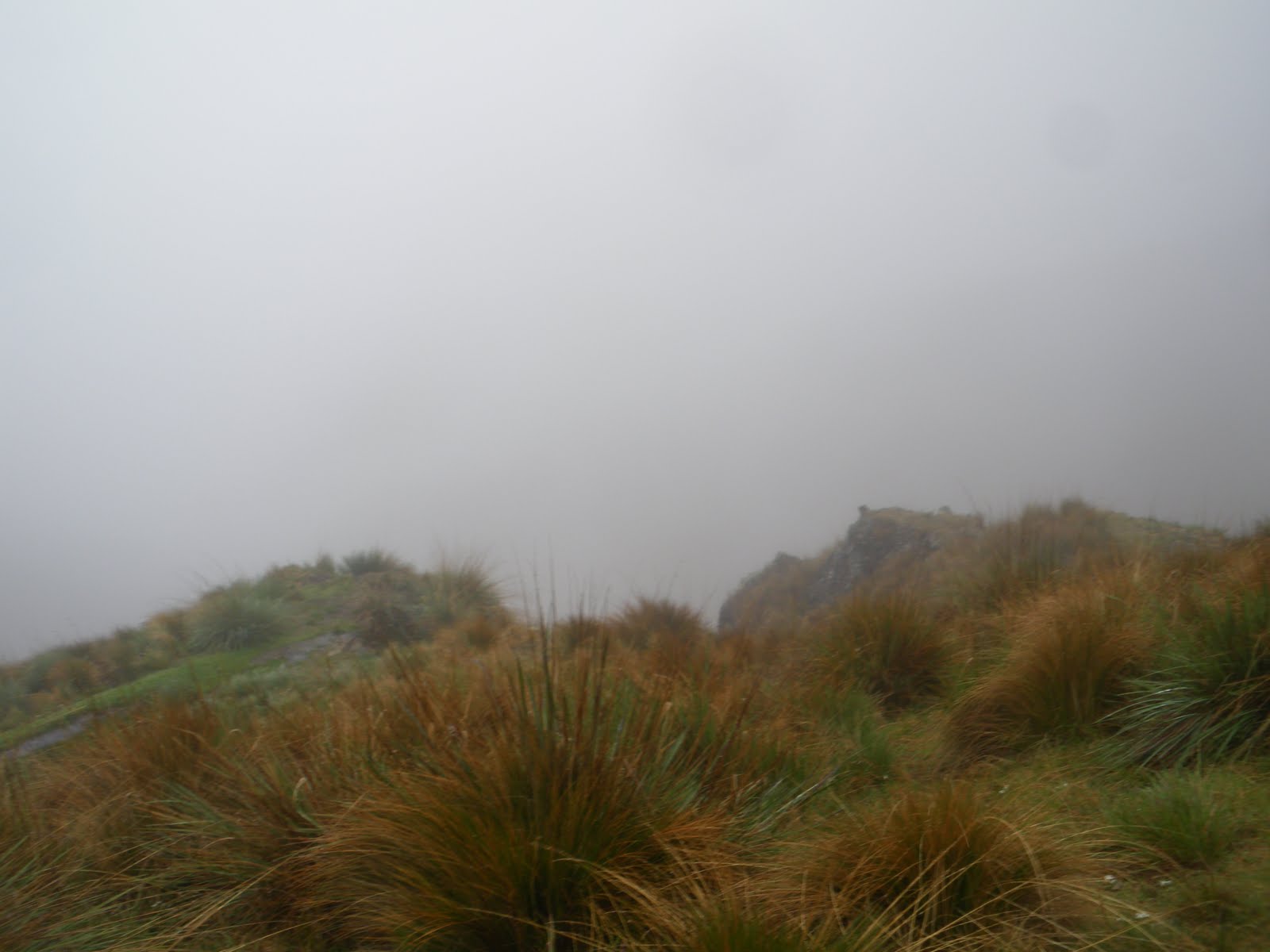 After an uphill morning of mist and fast paced hiking, I arrived at the peak of the entire Inca Trail – known locally in Kechuan as Warmiwanuska, this was “Dead Woman’s Pass.” The view there is meant to be astonishing – there wasn’t much chance of that – as you can see from these photos you can barely see 20 metres in front. At 4,215 metres above sea level, it felt great!