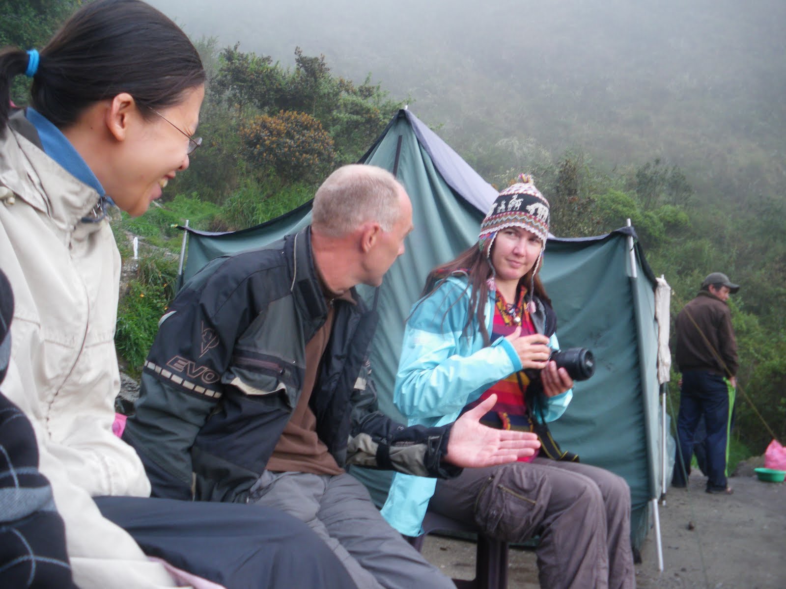 After lunch was more rest time. Including a cup of tea and sitting out in the cold. Here, She, Stan and Katie share a joke.