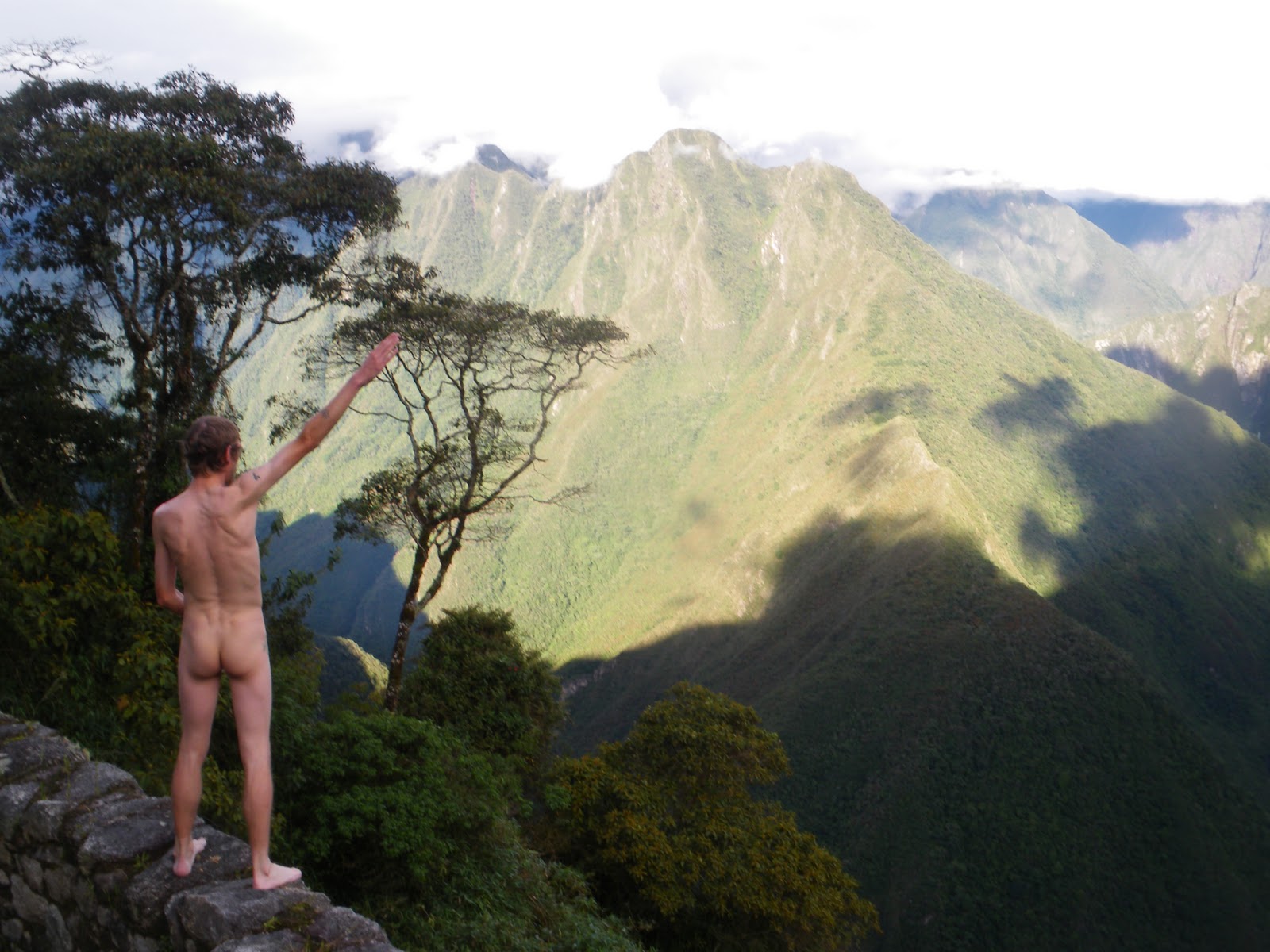 Everyone wanted to stand on the edge so we had to walk across the top of the ruins, which looked down into the valleys. Once I was at the edge you could hear a pin drop and I wanted to have a little moment to myself to ponder. There were a few other groups around, but we each got our moments. Mine was a naked one in the freedom of Peru with the Northern Ireland flag.