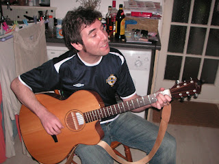 I first met Scott Gordon as he joined and quickly became a prominent member of the South of England Northern Ireland football Supporters Club, which I had set up in 2005. By coincidence Scott was living close by in Bournemouth’s Southbourne district and is the sort of character who will be liked and loved no matter whether he tries or not, or whether he cares. He normally doesn’t and when he does he doesn’t care if you care or not. Scott is a Belfast man with a working class Northern Ireland accent untouched by outside influences or forces. So much so that his name becomes Scatt, so ye know where we’re coming from, rayt? Add to Scott, Englishmen Simon and Dave and you have ‘Wee Blue Folk’. This is music and this is music that is good. You can work out why yourself.