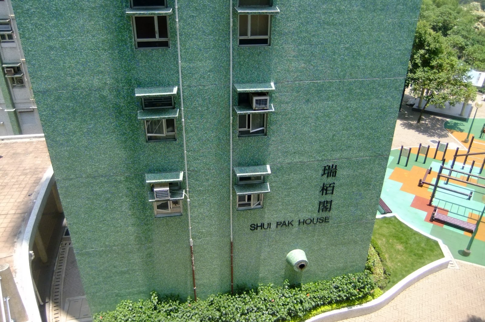 Our green skyscraper. Shui Pak House. We live on the 21st Floor.
