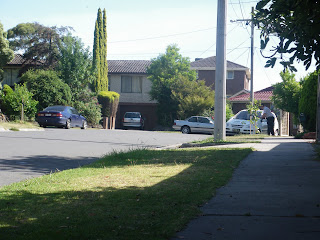 The houses looked the same. The blinds and curtains were all done. You couldn’t see in. cars were scattered round the street and in the driveway. At one point a resident came out of number 3 and drove their car away. “That wasn’t Harold Bishop” I shouted! I was finding the whole thing hilarious. There was also a slight path in between one of the houses, which apparently leads to the sports ground/baseball pitch in behind. This path is used to store the cameras and the actors and film crew also hide there sometimes. There isnt a lot of shading in the street and you can imagine the actors getting hot during scenes in the Melbourne sun.