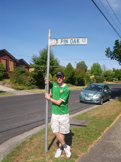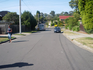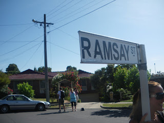 After a walk round staring an admiring each of the 6 houses, it was time to hold up the street sign and pose for photos. Everything was such a joke and so false. There I stood in Blackburn, Melbourne in a street called Pin Oak Court, pretending to be talking to Mrs Mangle on Ramsay Street, Errinsborough. If there was any consolation, at least I had the right city. That bit was true – I was in Melbourne.