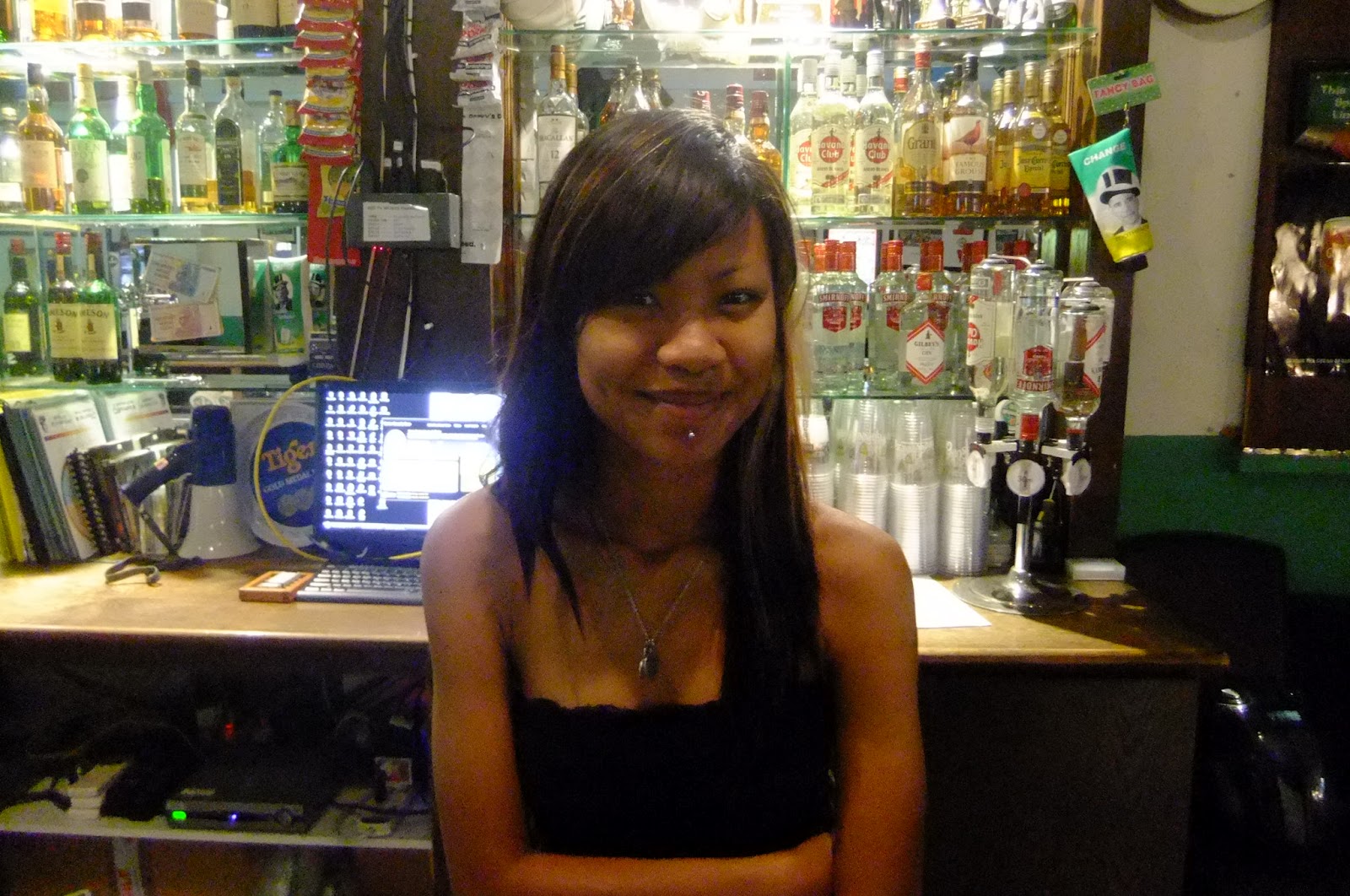The bar itself, including the pretty barmaid Seeha Luuna. Herself a Singaporean. A tidy friendly wee bar.