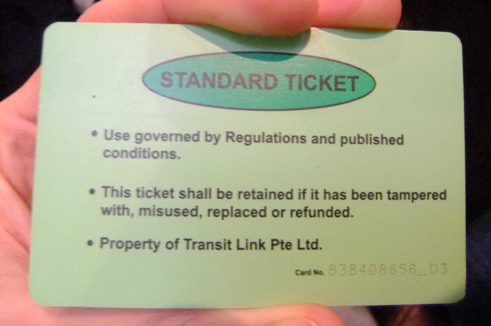 I’ve posted this before I’m sure, but these are the plastic card tickets you get when using the Singapore train system. If you put it back in you get a refund of your deposit. In 2009 and in 2011 the colour of these cards were green both times.